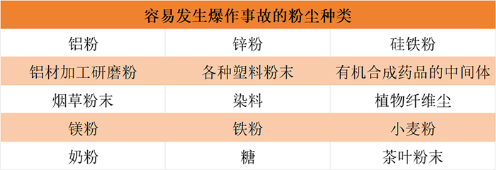 粉塵爆炸是由可燃性粉塵在爆炸極限范圍內遇到熱源(明火或高溫)而引發的,那么哪些粉塵易引發爆炸呢?