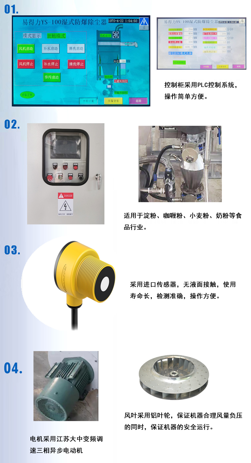 YS-20S 濕式集塵器采用 3.mm304 不銹鋼制作。濕式集塵器是利用離心力原理使水和含 塵氣體徹底混合后,將顆粒物洗滌